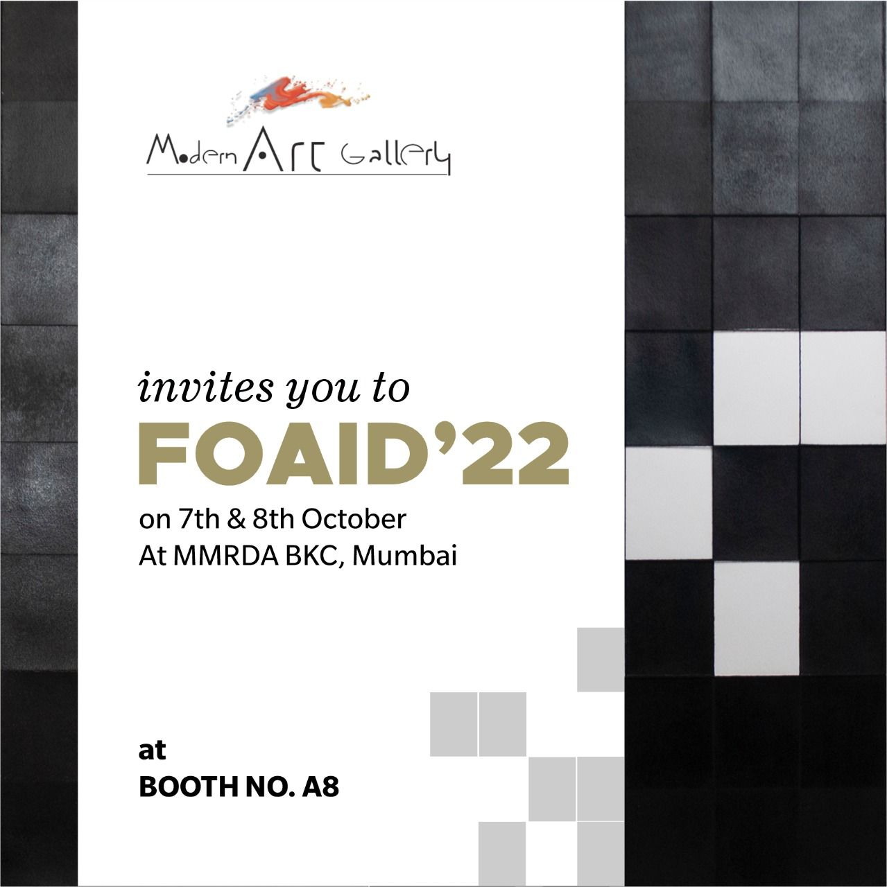 ![]() Name : LINES, STAINS, GRIDS & WORDS Date : 8 Nov - 30 Nov 2022 Venue : 29 Santushti Shopping Complex, Chanakyapuri, New Delhi - 110021 | ![]() Name : FOAID'22 Date : 7th Oct - 8th Oct 2022 Venue : MMRDA BKC, Mumbai | ![]() Name : HUES OF EARTH & SEA Date : 20 Aug - 20 Sept 2022 Venue : 29 Santushti Shopping Complex, Chanakyapuri, New Delhi - 110021 |